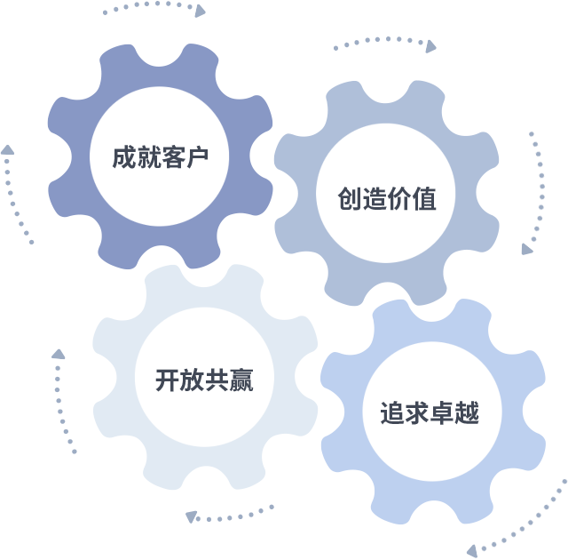 成就客户是一切决策的出发点,创造价值是衡量所有工作的标准,追求卓越是英国正版365做事做人的态度,开放共赢是英国正版365的格局也是最终的结果。价值观的齿轮环环相扣,推动着组织里的每个人不断向前。